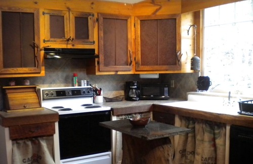 Appalachian Lady Bug is a 20-year-old home built by local craftsmen. The cabin is adorned with reclaimed barn wood, handcrafted metal work, masonry and woodwork. The result is a true taste of Appalachia, yet it hosts all the conveniences of a modern home. The amount of artistic detail and variety of wood and stone used in the construction of the cabin give it a purely “one of a kind” feel.
