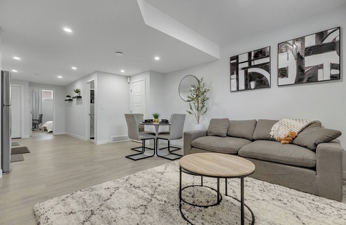 Escape to this stylish one-bedroom sanctuary in a friendly, safe community. Perfect for couples or solo travelers, our space blends modern comfort with serene elegance. Enjoy a plush queen bed, fully equipped kitchen, sleek bathroom, and high-speed Wi-Fi. Unwind in the cozy living area or step outside to lush surroundings. Thoughtful amenities include smart TV, coffee station, and premium toiletries. Walk to cafes, parks, and local gems. Experience relaxation and luxury—book your stay today!"