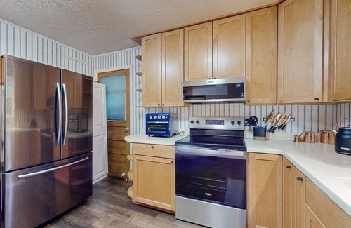 The well-equipped kitchen boasts excellent appliances, including a toaster oven for air frying, making it easy to whip up delicious meals. When the weather beckons, head out to the spacious deck to soak in the picturesque views of the surrounding trees and scenery. With a washer and dryer on-site, you can pack light and enjoy a stress-free stay.