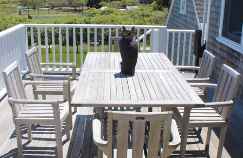 This is a happy place were families gather to savor the important moments of their lives. This grand house is meticulously maintained so celebrate in style and create those perfect photos. The secluded beach is only a short distance from the house so saying good morning to the neighborhood seals could become a morning routine. The pool is heated, the yard is large and the moors give you privacy. The outdoor grill is on the deck so it is convenient to grab supplies while cooking and the mini fridge for beverages is nearby. There is an upper and lower deck. We like to sit on the lower deck and have dinner near the grill but the upper deck is better for the spectacular views. The kitchen is so spacious you can socialize and cook at the same time. The dining room table is 12 feet long so loved ones can sit together and debate Nantucket topics such as whether the pool or beach is better. There are three suites with king beds and a private bath in each of them. The fourth full bath is in between the bunk room and the twin room. What is not listed is our music studio in the basement...feel free to play the baby grand. Our family lives there in the off season so we ensure the house is well maintained.