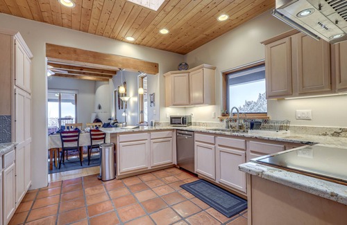 Escape to enchanting Santa Fe and experience the magic from this 3-bedroom, 2-bathroom vacation rental. Nestled on 1.5 acres, this spacious home offers a cozy fireplace, a scenic patio, and a deck perfect for outdoor dining. Discover the rich culture and art scene that Santa Fe is famous for with a visit to the Georgia O'Keeffe Museum, the world-renowned Meow Wolf, or the historic downtown Plaza. After a day of adventure, take a relaxing dip in the private hot tub and unwind in comfort.
