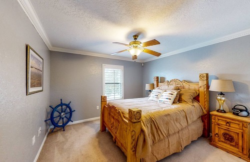 Back at your stay, find yourself relaxing in the nautical-themed living room where the seating is soft and the TV is large. The chef of your group will have no issues whipping up something tasty in the well-equipped kitchen amongst the updated appliances and ample meal prep space. Dine together at the custom-made dining table, or take your meal alfresco and enjoy the radiant Texas sunshine!