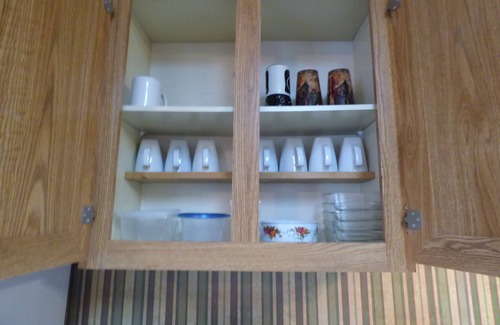 The kitchen is fully furnished with all appliances, fridge, dishwasher, microwave, toaster oven and coffee pot. We even supply your coffee (Folgers) and condiments. Dishes, glasses, cook, bake ware and all utensils are also provided. The griller in the family has a charcoal grill in the back complete with patio furniture.