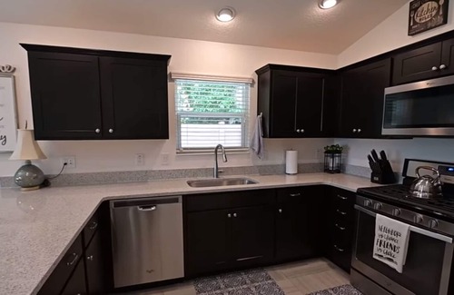 Full kitchen with new stainless steel appliances, dishes, glasses, pots/pans, dishwasher and plenty of storage. Inside laundry room with new washer and dryer, WIFI and two flat screen TVs w/ cable. Screened in lanai, with private fenced courtyard, outdoor dining table and gas grill. Towels, pool towels, sheets. Golf cart rental by the day, week or month is available locally.