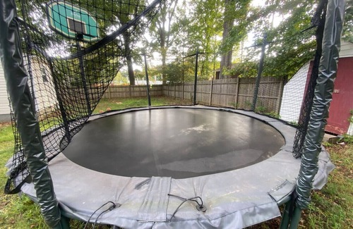 You will be close to everything when you stay at this centrally-located place. 3BR/1BA with fenced in dog run. The 3rd BR is a dedicated office space with bunk beds for additional guests or office space for work. The couch in the living room folds down as a futon if needed as well. There's a basketball goal, a small court, and a trampoline with a basketball goal in it. This home has easy access to HPU/311. Fenced in dog area off the laundry room.