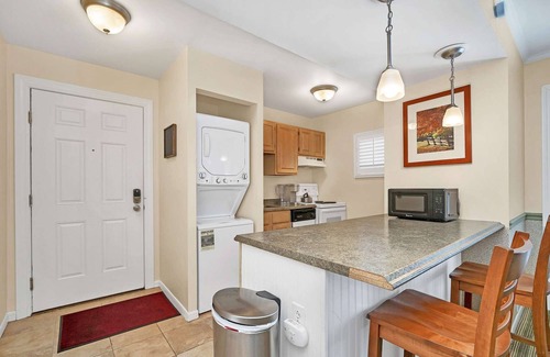 Just a few steps away, Clubhouse II awaits with its sun-filled space featuring comfortable seating, a flat-screen TV and a Wi-Fi access. A wet bar, unisex restroom, and a coin-operated laundry room enhance your convenience, while the outdoor saltwater pool (open seasonally) offers a perfect spot for relaxation or a refreshing swim.