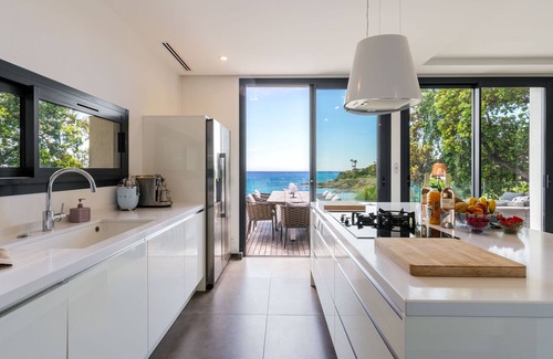 Upon arriving at Villa Serenity, you will be immediately charmed by the heated pool overlooking the sea, providing an idyllic setting for relaxing and swimming all year round. Water sports enthusiasts can enjoy the available paddleboard to explore the nearby crystal-clear waters.