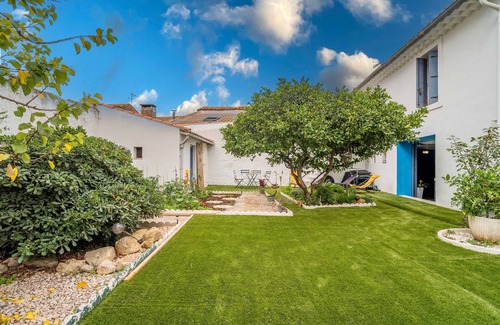 Winemaker's house of 325 m² located in the city center of Lespignan, just 15 minutes from the beaches and tourist sites. You will find two guest rooms with a shared bathroom, accommodating 4 or 5 people. Both 20 m² rooms are equipped with various amenities, one offering additional accessories. All rooms are air-conditioned and have smart TVs. The 160 m² garden features fruit trees, aromatic plants, a vegetable garden, and a barbecue. On the ground floor, a 75 m² wellness area, covered and accessible all year round by reservation, offers a professional therapeutic massage spa, a counter-current swimming spa, an infrared C sauna, table football, billiards, and a large-screen video projector.