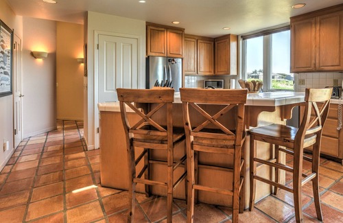 Unit 24 Lot 110. Enjoy beautiful ocean views from this comfortable 2-bedroom house with a loft. Set on a lovely meadow 200 yards from the beach and nestled beneath California Cypress trees, this light-filled home offers fabulous sea views from all rooms within the house as well as the outdoor deck and spa. Relax in the flowering courtyard for a sunny retreat out of the sea breeze, which is conveniently enclosed for your canine companion. The two bedrooms (each with an adjacent bathroom) are located on either end of the house providing maximum privacy. The sleeping area in the loft and game tables in the garage provide privacy and entertainment for the kids. The kitchen is well-equipped and includes a pantry for extra storage.
