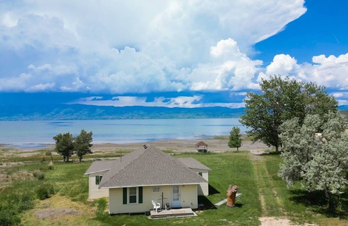 Welcome to the Shabby Chic 3 Bears Beach House with private beach access! Located near the North Beach in Saint Charles on the North East corner of Bear Lake next door to the landmark "Shoe House". This idyllic vacation rental offers the perfect getaway for those seeking sun, sand, and relaxation. Steps away from the glistening waters of Bear Lake, enjoy the private beach access. This beach house promises a memorable stay.