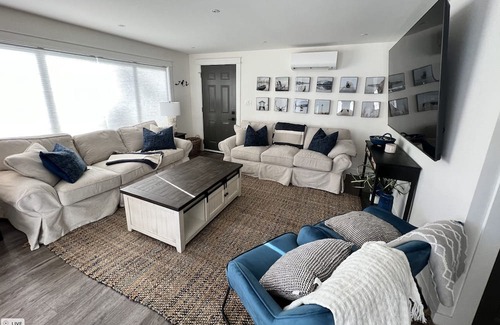 Cozy completely updated 2 bedroom Shawnigan Lake cabin. Primary has a Queen bed while secondary has a queen bunkbed and another pullout queen in the Family room. Dock across the street for Lake access, next door to Masons grocery store and also across the street from the public beach. Large TV's in every room, fire pit and completely fenced in yard. Laundry and dishwasher.