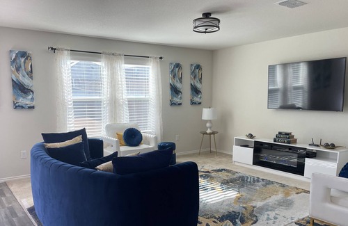 Spacious home with separate workspace, video game, 82’ screen TV, surround sound, remote fireplace and a large backyard. Access to pool available. Parking available onsite. Don’t have time to cook? Ask about our personal chef services!