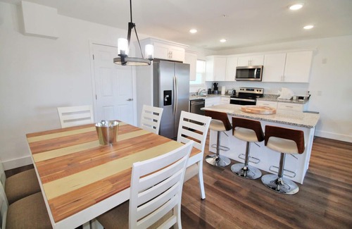 Kitchen, fully stocked, new appliances, granite countertops, island with seating for 4