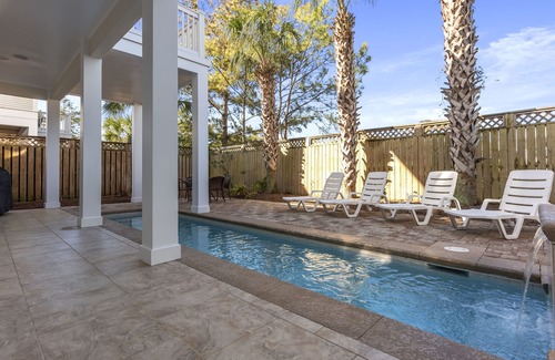 Yes, this Miramar Beach house has a swimming pool. Check the Facility Overview section for details about the pool and other available facilities.