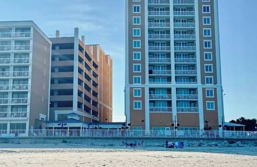 Your Family's Luxurious Beachfront Retreat, imagine waking to the gentle rhythm of the waves and the golden hues of sunrise painting the ocean horizon - all from the private baclony of your exquisitely appointed beachfront condo. Welcome to a haven where luxury seamlessly blends with family-friendly comfort, creating unforgettable memoris that will last a lifetime. Discover this enchanting 2-bedroom gem in Myrtle Beach. This soothing condo features 1 king bed, 2 double beds, 2 bathrooms with a jetted bathtub, and a cozy living room with a sofa bed. This is a pleasant retreat for those looking to unwind and relax by the beach. A great place to call homebase while you're away, we hope you enjoy your stay.