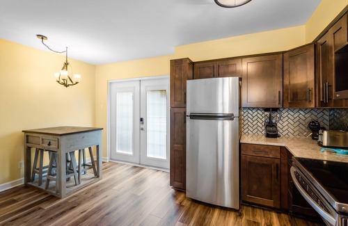 Our condo has been recently updated with new flooring, trim, doors, cabinets, and quartz countertops. The kitchen is fully equipped with brand new appliances and everything you need to cook up a delicious meal. The living room features a comfortable queen-sized sofa sleeper and a flat-screen TV for your entertainment.