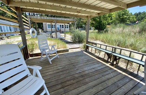 Cozy 2 bedroom, 1 bath cottage with a private beach on the Chesapeake Bay in the backyard. Enjoy family fun, solitude and sunsets over the Bay at this comfortable cottage with modern kitchen and bathroom. Air-conditioned interior with large open-air sleeping porch and dining area so you can hear the birds, the breeze off the bay and smell the sunshine and salt air. Bring food, drink and good books. Makes for a great private writer's retreat as well as summer vacation spot. Guests will love Sunset Bay Cottage at Silver Beach on the Eastern Shore of Virginia because it packs all of the following qualities into one amazing experience: - direct access to a private beach space in front of the cottage, with covered decks overlooking the beach and Bay, with a shower facility - peace and quiet - when you open the windows you can hear the waves ebb and flow - wildlife watching including opportunities to see ospreys and the occasional dolphin pod - excellent fishing and crabbing opportunities, including fishing from right off the beach - quiet local wharf for boat launching at Bayford, which is only a short boat ride away (small $3 launch fee) - amazing sunsets over the Chesapeake bay - open spaces for easy entertaining - perfect for a family looking for a quiet get away with direct access to the Chesapeake Bay - fully equipped kitchen; outdoor BBQ grill - plenty of free parking for at least 2 cars - many local Eastern Shore activities and site-seeing opportunities, both north and south of the home Guests at Sunset Bay Cottage will have access to the entire house; a small outbuilding and owner's closet are reserved for the owner's use. Other things to note: Sunset Bay Cottage can easily accommodate up to 4 guests (over 2 bedrooms and one full bathroom). Sunset Bay Cottage is on well water. It is not chlorinated like city water. It is perfectly fine to drink but please feel free to drink bottled water as well of course. Please note that there is no internet service at the house and cell phone service can be spotty. The Cottage does, however, have a land line for local calls. Please note that, due to recent global events, we are asking all guests to bring their own pillows, pillow cases and blankets for the beds at the cottage (for each of the 2 twin beds and the 1 queen bed). We are also asking guests to bring their own towels, both bath towels and beach towels. We will still be providing clean bed sheets and bedspreads, should you choose to use them. We are focused on cleaning and have made some changes there as well. We want the cottage to be as safe as possible, for us as well as our guests. We know that this is a bit of an inconvenience, but we hope that this makes you feel more comfortable. Thanks for bearing with us during these trying times! We have provided in the house a set of house rules and information about the cottage. There are a number of cool things to do in the area, including local seafood and other restaurants, craft breweries, local museums, guided kayak and fishing tours (including a kayak trip up Nassawadox and Church creeks to a good local winery and vineyard - book ahead of time with SouthEast Expeditions), historic towns and other interesting and fun things to do. Swim at your own risk - the sandbars are constantly shifting. Bug spray is recommended for the summer months. Finally, please note that the beach at the cottage is private, for the width of the cottage lot. Adjacent beach areas (but not the bay of course) are also private so please bear this in mind when exploring up and down the beach.