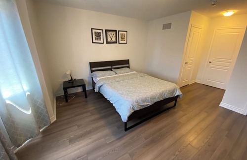 This house comes with 4 PRIVATE bedroom. Bedrooms come with a large window and it has a queen bed which comfortably sleeps 2, fresh clean linens and a small night table. The room also has a lamp light that can be positioned to where you require additional light, we also have a computer/laptop table with a chair. The room has a closet with a few hangers that you may use at any time. There is vinyl throughout the room which is cleaned before arrival.