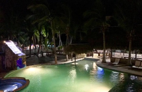 Guests have full access to the grounds, including the large pool, which features a water slide, jacuzzi (with both solar and gas heat), in-pool table and bar stools, and lounge area with chairs. Instead of a traditional living room, there is a beautiful palapa with stacking sliding glass doors, TV, bar, dining area, lounge space, gas griddle and grill for those fish you may wish to catch. The pool area includes an outdoor shower and men's and women's bathrooms for added convenience. Guests also enjoy use of the volleyball court, beach front sun beds and hammocks hung from the coconut trees, ocean front decks and use of the kayaks and paddle boards.