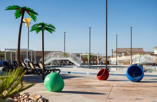 Our stylishly decorated single-level home in the Paseos Community features 4 total bedrooms and 3.5 bathrooms (including 2 ensuite master bedrooms) and comfortably sleeps up to 10 people. All bedrooms include their own SMART TV and walk-in closet. The home is pet friendly with a fully enclosed backyard.