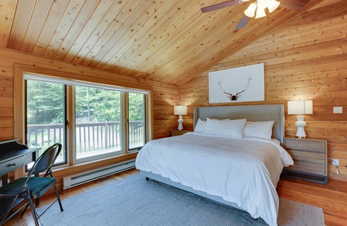 Stunning light, bright and airy, this cottage offers guests a main floor open concept spacious living area with vaulted ceilings and a wood burning fireplace which offers access to the exterior wrap around deck. Important to note, the interior is being completely updated with new modern furnishing throughout. The brightly lit kitchen comes equipped with high end stainless steel appliances including a wine fridge for wine connoisseurs. The dining area offers spectacular views of the lake while providing seating for 8-10 dinner guests. Guests can also enjoy a glass of wine while sitting at the kitchen island which comes equipped with bar stools. Four beautifully appointed sun-lit bedrooms including a master king bedroom with ensuite bathroom will accommodate all of your guest’s accomodation needs.
