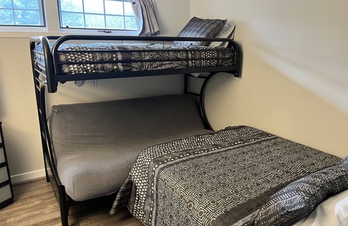 Large 3 bed 2 bath in beautiful gated South Down Shores community. Sleeps up to 14 but ideal for 3 couples and a few children. Perfect for snow shoe and cross country skiing on the property and minutes from all your favorite winter fun like Gun Stock Ski snowboarding and Tubing. Come home to beautifully renovated home with a wood burning fire place. Plenty of space and beds for guests. New On Demand water heater, you will never run out of hot water. Use the ice maker to make a drink near the wet bar as you enjoy your family and friends