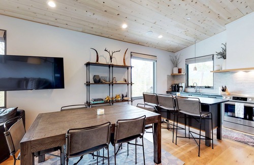 An authentic Montana escape awaits you at this modern Big Sky cabin, featuring a ski-in/ski-out location with a view of the lake, a private hot tub, and easy access to all the activities nearby!