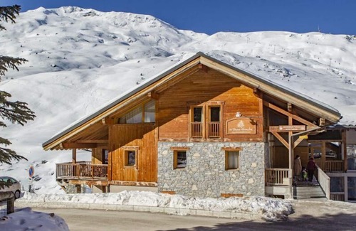 La Dame Blanche Chalet, Les Menuires, Alps, France comprises of 13 apartments built in an unusual traditional and modern style. It is extremely comfortable and was built in a mountain style with woodwork, noble materials and modern furniture. For guests relaxation, facilities within the residence include: fireplaces, private saunas (not in all appartments), balcony with a view over the surrounding mountains. The kitchen/lounge is a perfect meeting area. For extra comfort most of the rooms have private bathrooms. The residence in Les Menuires, Alps, France is ideally situated in the district of Bruyeres: ski-in, close to the blue piste (easy access for skiers of all levels) and close to the shops. Surface area : about 56 m². Ground floor. Living room with stove. Bedroom with double bed. Bedroom with 2 single beds. Kitchen with kettle, coffee machine, oven, toaster, dishwasher, microwave, 4 vitroceramics cooking rings, fridge-freezer. 2 shower rooms with shower, wash-hand basin. Separated WC. Balcony OR Terrace.