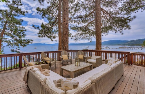 This luxurious, modern lakefront home is set on the beautiful North Shore of Lake Tahoe in Kings Beach. Floor-to-ceiling windows in the living room offer one of the most beautiful views on the Lake. Skippin' Stones is well appointed throughout, with a gourmet kitchen, oversized primary bedroom with lake views, and luxurious bedding. Relax on the oversized deck, or head down to the pier. Attention to detail is the calling card of this gorgeous property. All furnishings, lighting and accouterments are directly from Restoration Hardware and the classic marine theme, with beautiful whites, reds and blues, brings the lake indoors.You feel as if you have stepped onto a photo shoot on Martha's Vineyard. Skippin' Stones is conveniently located within walking distance to multiple restaurants, shopping, the public beach with jet skis, parasailing, kayaking and paddleboarding. Come enjoy this Lake Tahoe beauty.