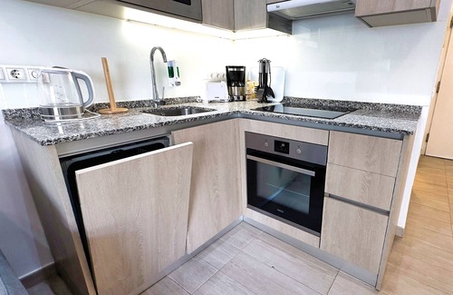 The holiday home comprises: access to the third floor by lift, large living room with TV with some international channels, sitting area and dining area, open kitchen with everything you need to cook such as oven, hob, refrigerator, pans, etc., access to the private furnished terrace with partial sea views, main bedroom with double bed and en-suite bathroom with shower, interior second bedroom with bunkbed, and separate bathroom with shower.