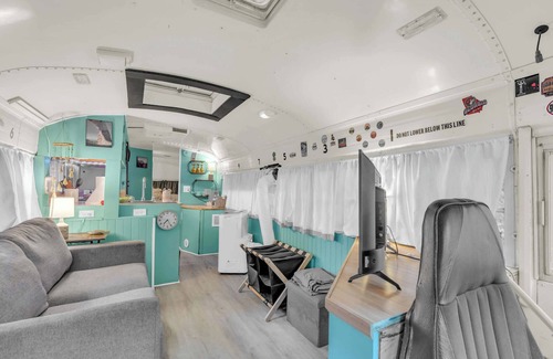 Step inside this unique Bluebird bus turned cozy retreat. Thoughtfully converted with all the essentials, it blends charm and comfort in a creative space. Relax in the inviting interior, enjoy outdoor seating, and experience a stay that’s as fun as it is memorable. Perfect for travelers looking for something out of the ordinary.