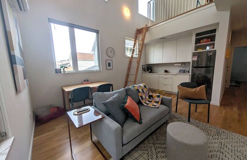 In the heart of downtown Raleigh, this stylish loft blends modern flair with funky charm. Enjoy skyline views from the shared rooftop deck—perfect for morning coffee or evening wine.