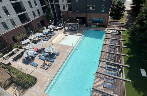 This large open floor plan has everything you need while you stay and walking distance to many locations. Modern kitchen and bathroom furnishings. When you are finishing your day, step out to a amazing sunset every night on the private balcony that wraps around the apartment. Also, head to the roof to view the skyline of downtown Atlanta. Free same level parking. Billiards, Pool and Gym access. **All photos were taking from the apartment. Shuttle to Atlantic station and Marta. Bike to Ga Tech.