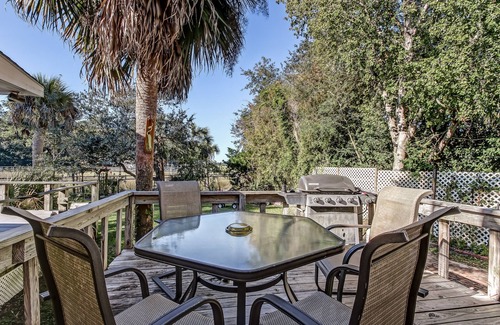 Outside you have a private dock that over looks Camoose Creek, beautiful marsh, and Johnny Mercer Bridge. Or sit out on the deck under a beautiful palm tree. Private Parking. Inside cute a button (look at the pictures).