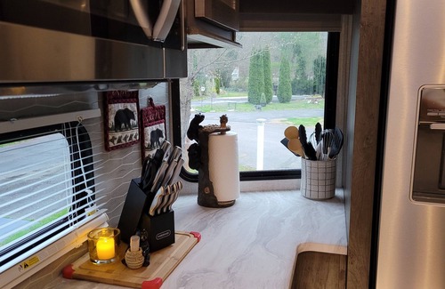 Located just 10 miles from downtown Gatlinburg right off US-321, Miss Daisy’s Lodge is a 2021 Wildwood Grand Lodge 42FK Park Model RV. She is set up on Lot 199 located in the Outdoor Resorts of Gatlinburg (ORG). As we own the lot she sits on, there are no additional resort/campground fees due by anyone renting her from us.