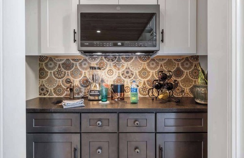 After a full day of fun, head on up to the open concept living room with 30 ft vaulted ceilings and send the kids up the spiral staircase to the 500 square foot loft. Up in the playroom, they have over fifty family friendly DVDs to watch or can game, play or “just dance” with the Xbox Kinect set up for them. For your younger children , we have a toy kitchen set up with all the accessories in the sunroom on the main level.