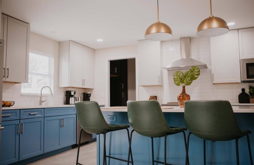 Step outside to your private oasis. Take a dip in the sparkling pool, unwind in the hot tub, or perfect your swing on the putting green. Enjoy friendly competition with the basketball hoop, cornhole, giant Connect 4, oversized Jenga, or bounce ball. Evenings can be spent gathered around the fire pit or at the outdoor bar and dining area, creating memories that last long after the trip.