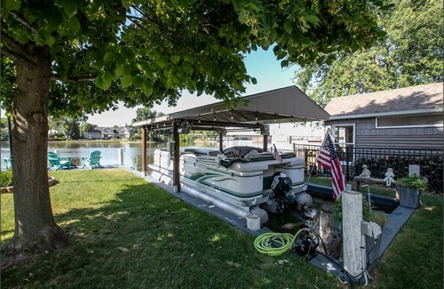 One of the unique features of this vacation rental is the private dock. Bring your own boat or take advantage of our 24-foot pontoon rental for some water fun! The lake beckons you for fishing, swimming, or a serene boat ride at sunset.
