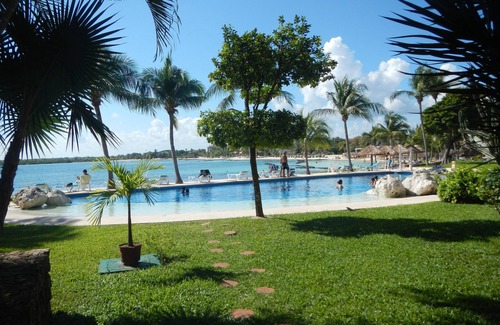 Our place is nestled in the Chac Hal Al condominium complex and hosts the best of both worlds: Puerto Aventuras marina views from the huge covered outdoor living room and a few steps out the front door to the beach or pools!