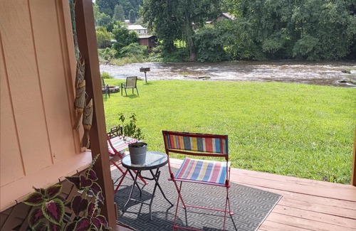 Whether your looking for adventure or romance your sure to find it in this one bedroom, one bath cabin on the river. It has been remodeled. And the bed and sofa are new. Large shared yard with firepit, swing, grill and picnic table on the river. Also, there are a few fishing poles, you are welcome to use. The cabin is centrally located between Cherokee and Bryson City, so if you want to gamble or ride the train you are only minutes away. There are hiking trails and waterfalls nearby in the Great Smoky Mountains National Park . Or go whitewater rafting and ziplining at the Nantahala Gorge. Must be able to walk down uneven stone stairs. Or if art galleries and boutiques is your thing, Bryson City has that too along with Breweries. Or you could just chill and grill at the cabin. Lie around in the living room and read a book while listening to the sound of the rushing river outside. Snuggle up next to the firepit and roast some marshmellows. Also, now with central heat and air. And has smart tv now If you need a place for 4 people instead of just 2 check out vrbo number 4672931. It is the top cabin that you will share the yard with if it is rented.