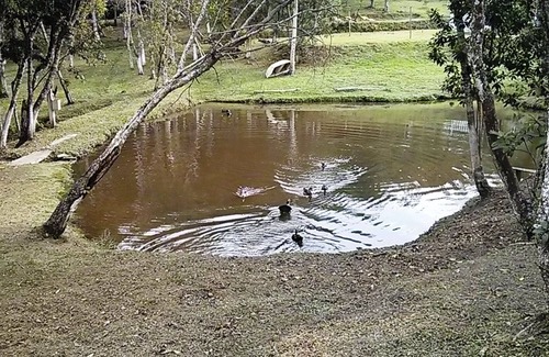Farm with 32000 square meters next to nature, with adult pool with waterfall and children's pool with hydro, grass volleyball court, games tables, barbecue, wood stove, fishing lake, spring spout, space for fires, trail in the woods and wild animals. House with 4 bedrooms, 1 suite, living room with Sky TV with 45 channels, kitchen with independent refrigerator and freezer, 2 bathrooms outside the suite. Ample woodland, environment full of peace and tranquility, beautiful views and great walking options nearby, with lush nature and small lakeside by the dam. Lots of green space, fresh air and native plants. great place for rest, relaxation and socializing with family and friends.