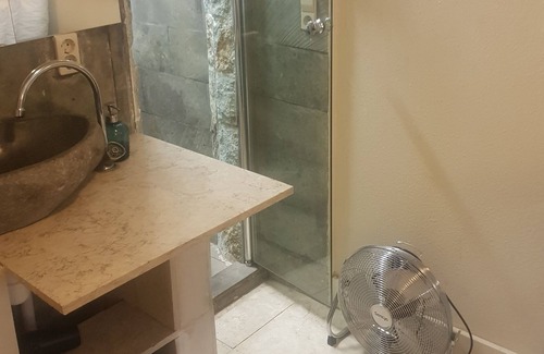 Another important matter is that the cement foundation under the tails in the bathroom in the photos is broken, so when you shower the water will go inside the broken spaces. This means that you will have to mop properly dry the floor everytime you finish showering and let the floor dry for few hours. Because the toilet pot and the shower and the sink are on the same floor without divisions as you can see from the photos, my guests usually use the toilet first before taking the shower. I have not repaired this situation yet because I have not been able to find the same tiles that I may break when I do the repair. If you cannot accept this situation, then my studio is not for you.