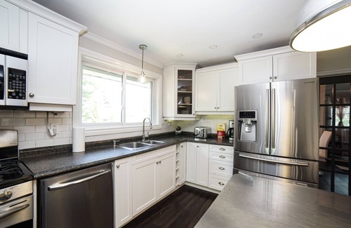 This cottage house is a blend of classic and modern dimensions where you can watch the waves of Lake Simcoe from sunrise to late afternoon on the front patio and the moments of the sunset while sitting on the back patio watching the green backyard. You will enjoy cooking in a modern-style kitchen equipped with a smart fridge/freezer and other appliances you need. siding the kitchen is a resting space that has a TV, Library, and light games. Extra pluses include close proximity to Alcona's main beaches and parks and steps away from Innisfil shops and restaurants. Modern smart splits installed throughout the house including all bedrooms make you feel comfortable with a pleasant temperature. All these features are gathered in a calm and secure building.