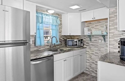 Nearly 200 reviews on other sites have us at 4.95 out of 5 stars! Updated in 2019, this adorable and comfortable 1 BR 1 BA apartment even has laundry. The full kitchen does not have a conventional oven but it does have a microwave and countertop convection oven. There is also a gas grill in the private patio area. The master features a king bed. Kids can use the queen pull-out sofabed. This unit is perfect for a party of four or less. Dogs (insurance-approved breeds only) are welcome as there is a small fenced-in patio area for them and you to enjoy. The home is fully stocked with dishes, linens, towels, WIFI, etc. This is one of three units located just steps from private beach access. The back deck features an outdoor shower and a fish or dog cleaning station. Enjoy the sunrise or a launch from one of several deck chairs that look out to the ocean - and the host offers the use of beach chairs, umbrellas, and beach towels. Our new front patio has a game table and a firepit (No smoking inside the unit, please!)