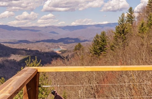 Prepared to be WOWed! Spectacular views, from most every room of the Great Smoky Mtn National Park, Nantahala Gorge and Lake Fontana. Get ready to unwind, relax and recharge and make unforgettable memories in this very private and spacious mountain retreat. This home offers comfort, tranquility and stunning views and stargazing on the enormous wrap-around deck. Conveniently located near the Nantahala Outdoor Center and a short drive to Bryson City, AT and Deep Creek Hikes, waterfalls and nearby attractions. Inside you will find 3 bedrooms, 2.5 baths and a gaming room in the den down a unique spiral staircase. This room features a sleeper sofa bed and half bath. The home sleeps 8. The kitchen is stocked with everything you would need to make you feel at home. Enjoy our large library of books, chest of games, fire pit, hammock or relax on a rocking chair or in the screened in porch. Great views from the 6-person hot tub. This is a secluded home that is at the top of the neighborhood. You will have total privacy. This environment is total relaxation, unless of course, you want to go out on an adventure of hiking, mountain biking, rafting, kayaking or just dinner. There is so much to do in the area that you will never be bored. Whether it is sightseeing, dining, or adventure, you are in the right place! Regardless of your adventure, you will return to the most Zen-like place you could imagine.