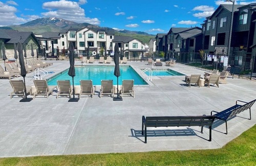 Pool, Hot Tub steps away. Pickleball Courts, BBQ Grills, outdoor eating areas, & playground. 15 min access to I-15.