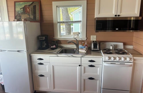 Midship Cottage is a cozy one-bedroom cottage with a full-size bed, kitchen, and lovely sitting area with a wood-burning fireplace. The cottage has a rich history as one of the oldest buildings in the county. Amenities include TV, DVD player, and a gorgeous view and a deck leading outside. Once you're outside there is a nice patio set, grill, fire pit, and picnic table. This cottage is in a great location with an amazing view! What a great way to spend a vacation!