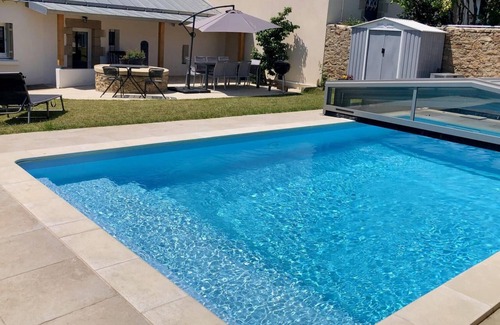 On the ground floor, a beautiful entrance gives you access to the living room open to the kitchen. The latter is fully equipped and bathed in light from the terrace and the 300m2 garden. You will also find on the ground floor a large bedroom for two people with a 160x200 bed as well as a shower room, a WC and a laundry room. The first floor offers two spacious bedrooms, served by a shower room and a WC; each room can accommodate two people with a bed of 180x200 for one and a 160x200 for the other. On the second floor is a large bedroom with three 90x190 beds (plus an extra bed possible) and a large bathroom with WC. Whether by the pool in the summer, or in the living room, by the fireside in the winter, at Soñj mat, everything has been thought out to allow you to spend the most pleasant of stays. Parties not allowed Maryline and Graham are looking forward to welcoming you! Perhaps the hardest part will be choosing between the swimming pool (7m x 3.5m, depth 1.60m), heated from April to October, and the ocean! Indeed, the beach of Les Granges and that of Barges are less than 5km away! 50m from the cottage is a cycle path that will take you directly to the Pointe de Pen Lan. Soñj mat is located in the town center of Muzillac, in a quiet, one-way street, where you can park for free, directly in front of the gîte. No need to travel by car, you are close to shops, restaurants and the weekly market. If you wish to venture a little further, the Rhuys peninsula and the Gulf of Morbihan are within your reach.