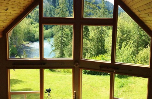 River House, a 2672 sf home on a high bank above the Elwha River, features views of the River and the distant snow-topped mountains that are a photographer's delight, an ever-changing vista of light and shadow.
