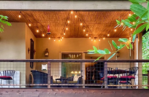 Wolf Glen features 4 spacious bedrooms/5 bathrooms (3 full, 2 half), 2 bedrooms with new Tempur-Pedic king beds and 2 with queen beds fitted with fine quality linens; two of the bedrooms are en-suite with dual sinks, showers, and lavish soaking tubs. There are additional twin mattresses available to accommodate additional sleeping configurations. Three of the bedrooms have sliding doors with direct access to decks overlooking the beautiful Sonoma Creek and amazing scenery.